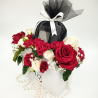 Aranjament 2 inimi în cutie cu sertar,cu hortensie deshidratată şi trandafiri naturali.